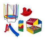 Cama Elástica Pula Pula 1,40m + Piscina de Bolinhas 1,00m + 500 Bolinhas + Escorregador Médio + Gangorra 1 Lugar