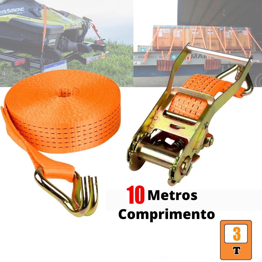 Cinta Catraca Para Amarração De Carga 10 Metros Tração Catracada