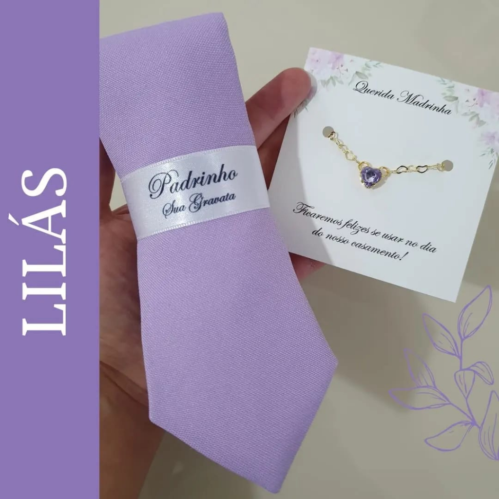 Kit Padrinhos Gravata semi slim e Pulseira madrinha folheada cores