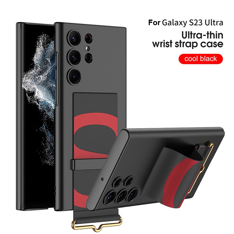 Para Samsung Galaxy S23 , S23 Plus Ultra Case GKK Suporte De Pulso Retráctil Capa De Couro Telefone