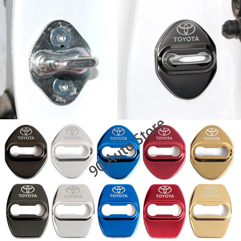4 Pcs Caso Trava Da Tampa Da Fechadura Da Porta Do Carro De Aço Inoxidável Fechadura De Portão Capa De Proteção Para Toyota Camry Highlander Chr Rav4 Gt86 Vios Prado Corolla Land Cruiser Levin