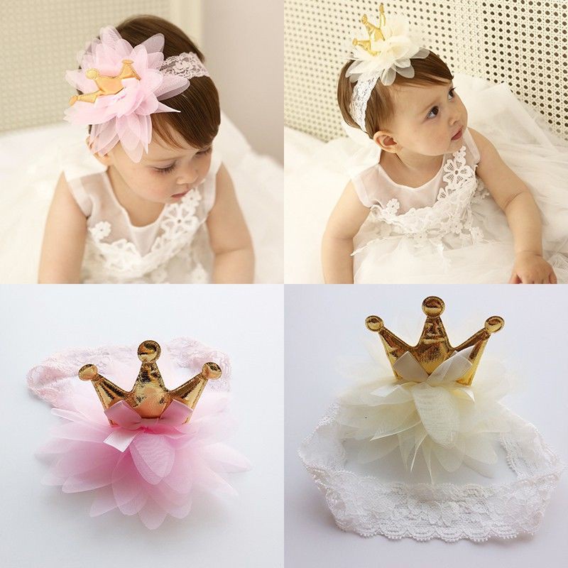 Coroa Rosa E Bege Flores Hairbands Meninas Crianças Elastic Faixa De Cabelo Crianças Acessórios Para O Cabelo