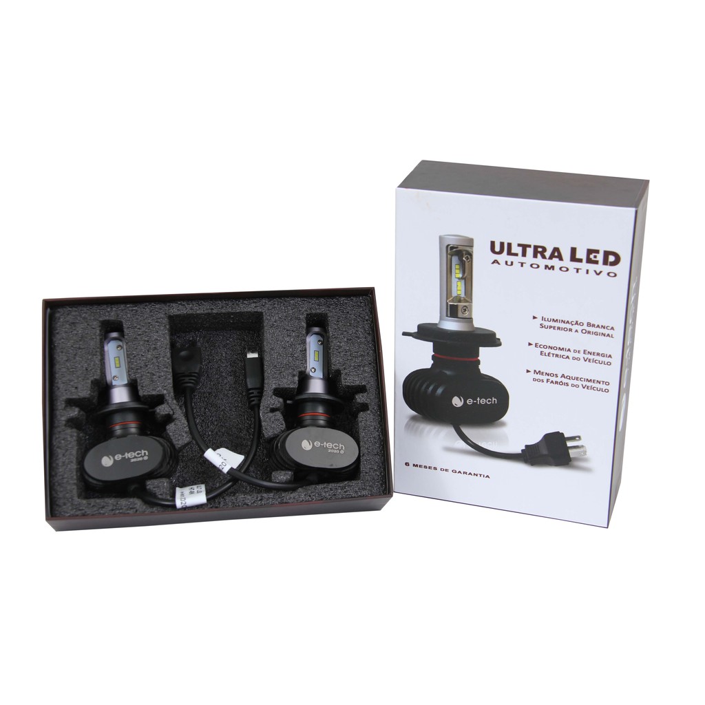Kit Lampada Super Led H4 8000k Ultra Led 6000 Lúmens 12v 40w E-Tech Farol Alto Baixo IP68