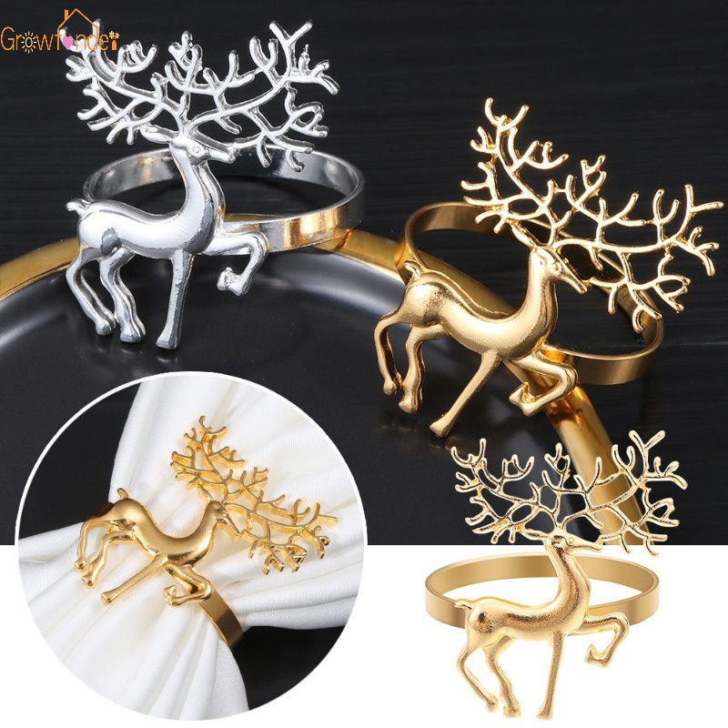 1Pc Anel De Guardanapo De Veado Liga Alce Fivela De Natal Gold/Silver Porta Toalhas De Mesa Jantar De Aniversário Suprimentos Para Decoração De Festas
