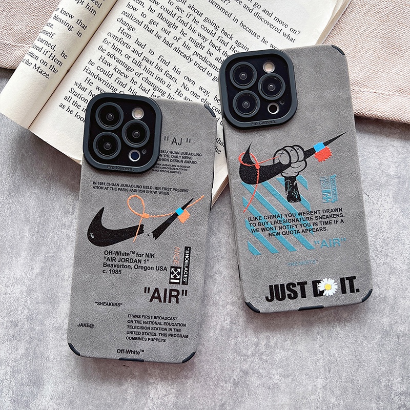 Couro De Veludo Cinzento De Marca De Luxo NK Capa De Gancho Quebrado Para iPhone 14 13 12 11 Pro Max 14Plus Moda Quadrada Anti-Impacto Celular Macia