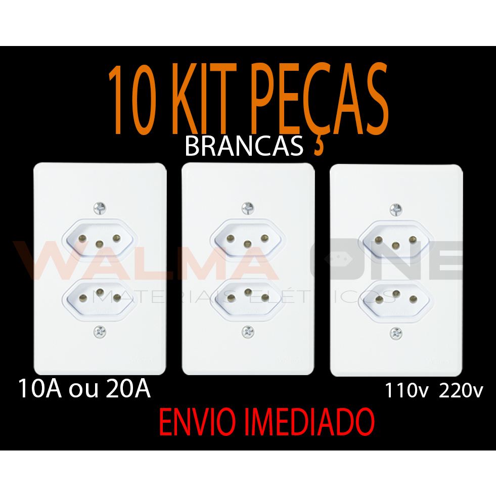 10 Tomadas DUPLAS kit 10A 20A SIMPLES BRANCA TOC COMPLETA COM PLACA E PARAFUSO BRANCA 4X2 2X4 10 20 AMPERES Tomadas femea