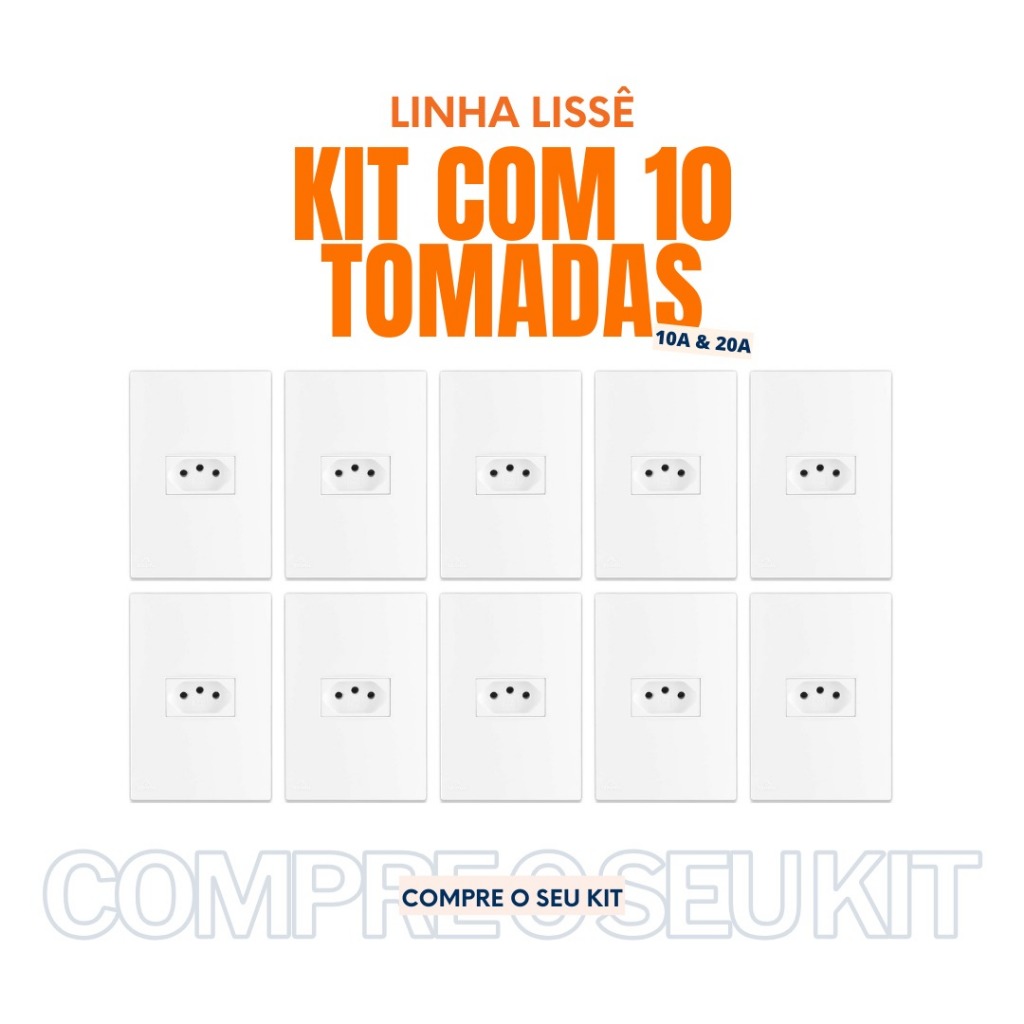 Kit Tomadas 10A E 20A Interruptor Simples Apagador Tecla Branca Apoio Linha Lisse Envio Já