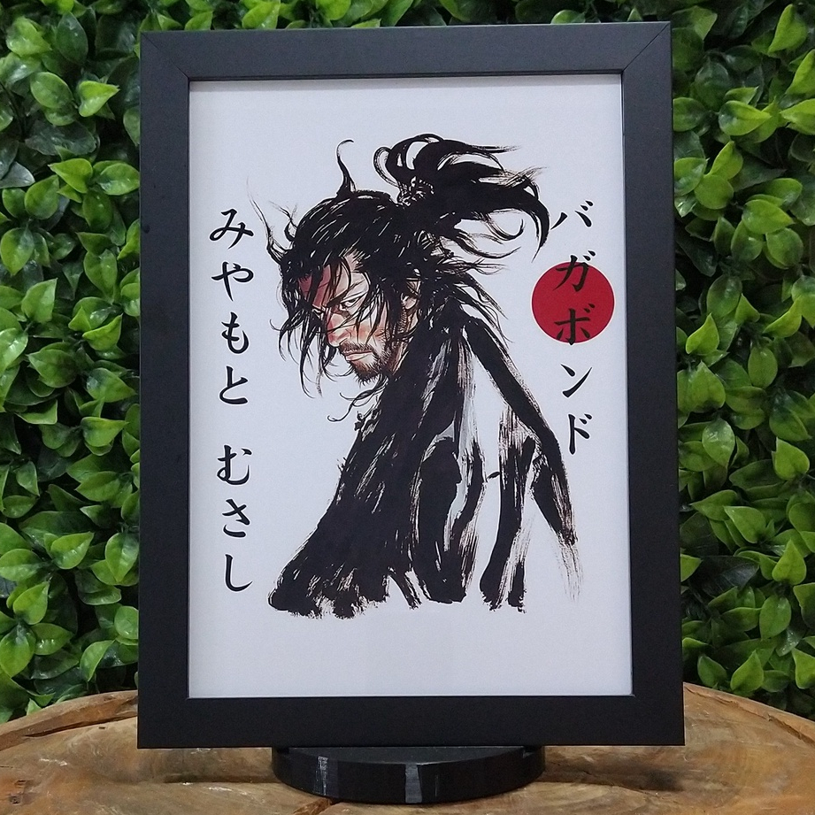 Quadro decorativo com moldura e vidro Vagabond Musashi Anime pôster geek nerd