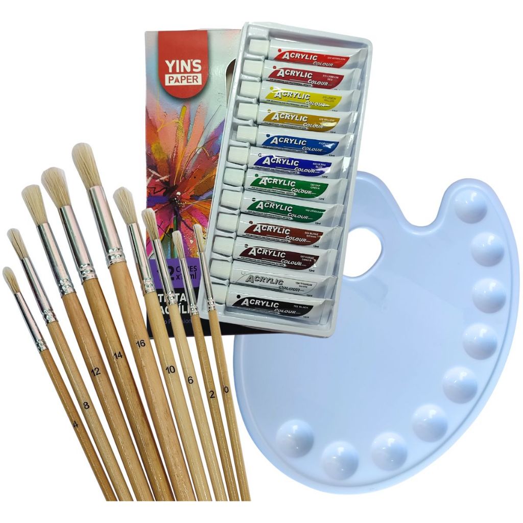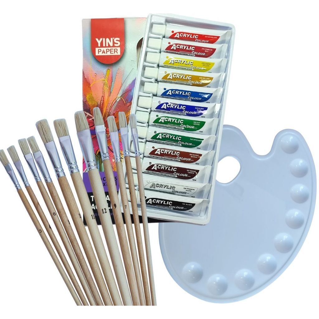 Kit 11 Pinceis 12 Tintas Acrilica e Godê 9 Cavidades Pintura