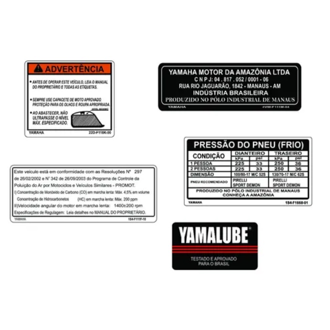 Adesivos de Advertência Yamaha Fazer FZ 25