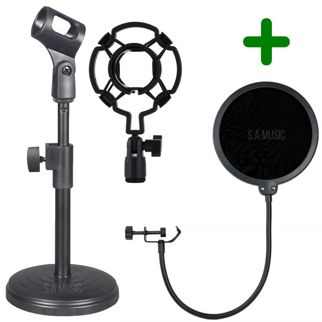 Suporte Pedestal Mesa P/ Microfone+ Shock Mount Aranha + Pop