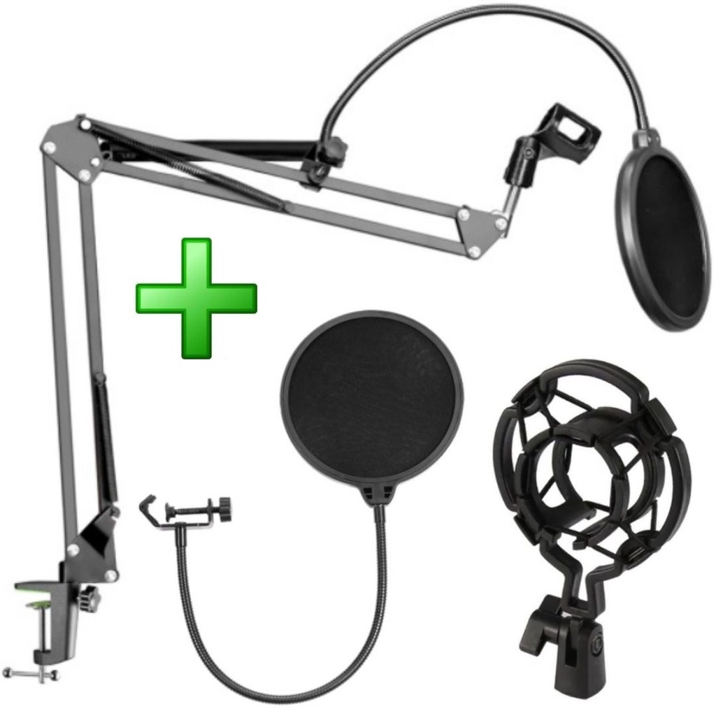 Kit Braço Articulado Mesa Suporte Microfone Shock Mount Aranha + Pop Filter