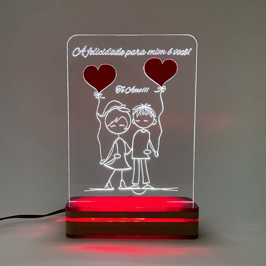 Presente Dia Dos Namorados Abajur Casal Vermelho Led Branco