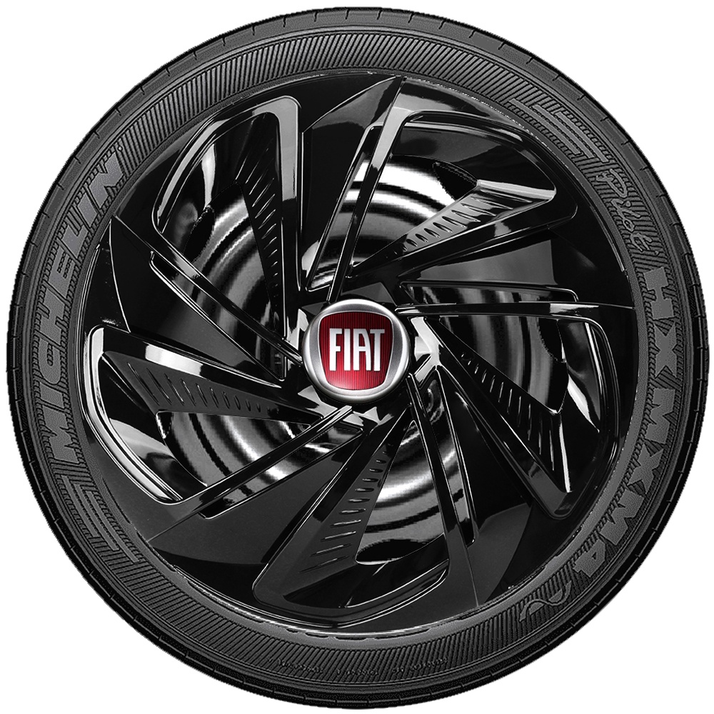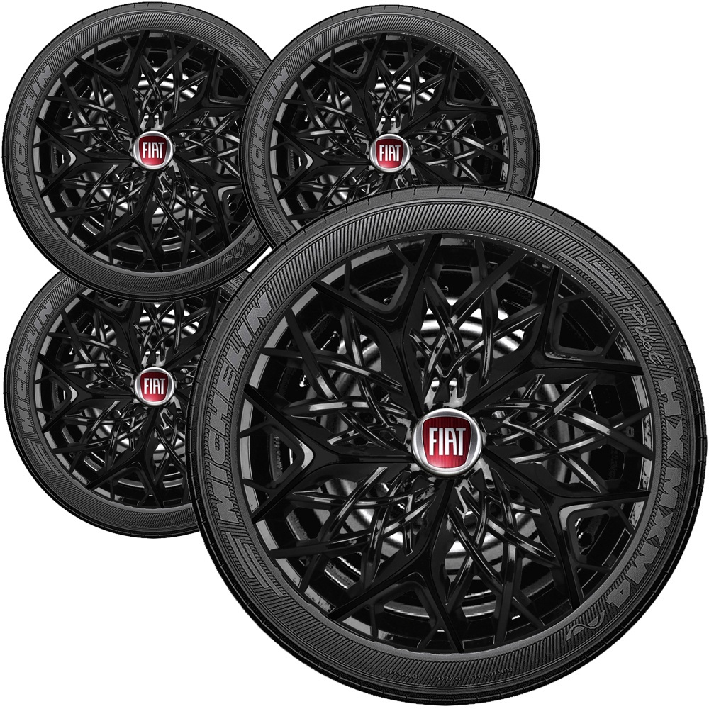 Jogo 4 Calotas Esportivas aro 13/14 Preta Brilhante Fiat Mobi Palio Siena Stilo Strada Uno