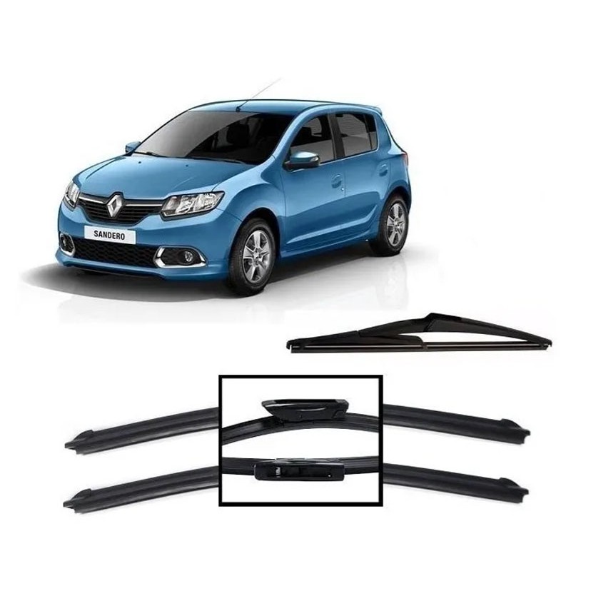 Kit 3 Palhetas Limpador De Parabrisa Dianteiro + traseiro Para Renault Sandero 2015 2016 2017 2018 2019 2020