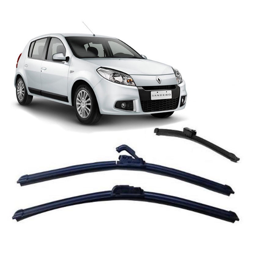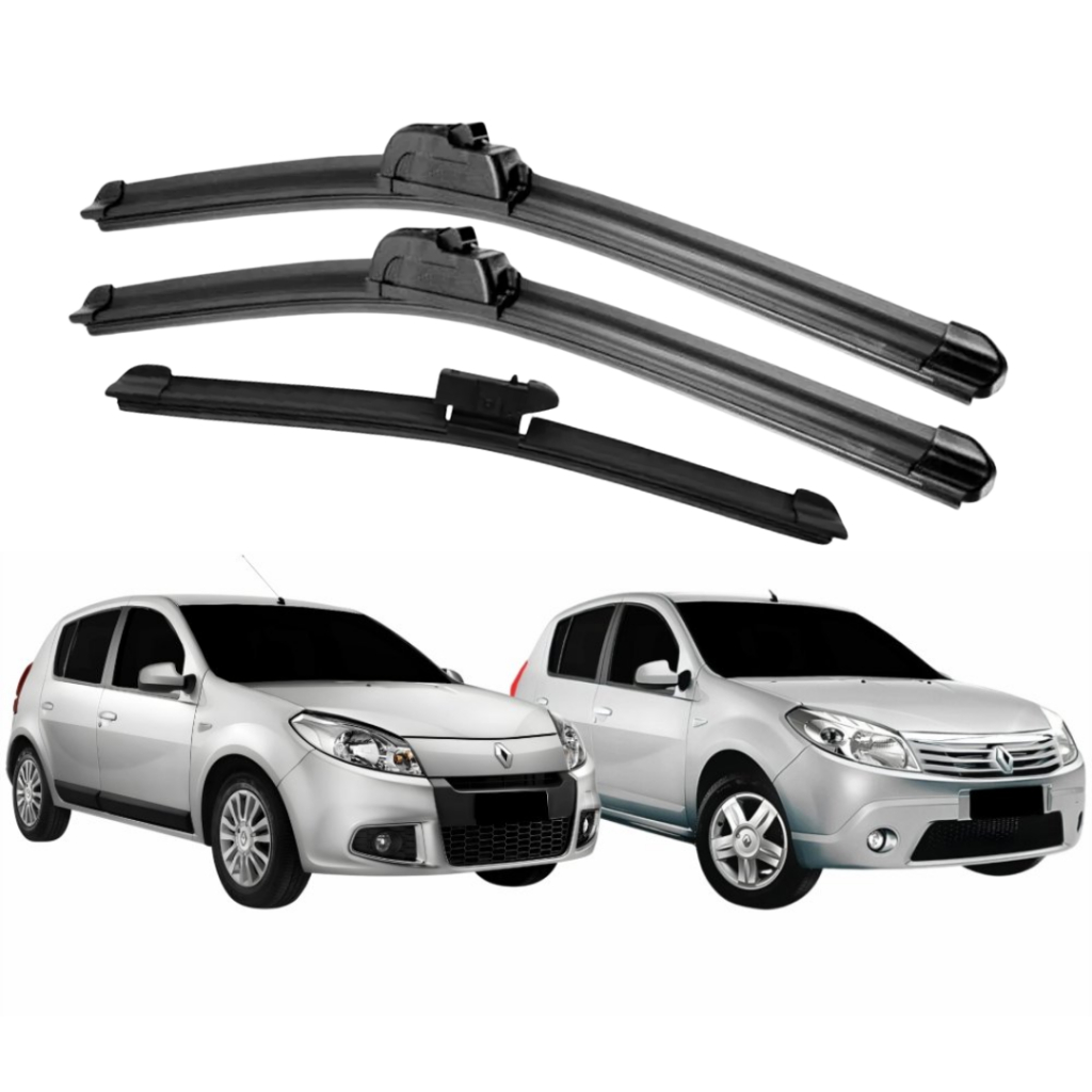 Kit 3 Palhetas Limpador De Parabrisa Dianteiro + traseiro Renault Sandero 2007 2008 2009 2010 2011 2012 2013 2014