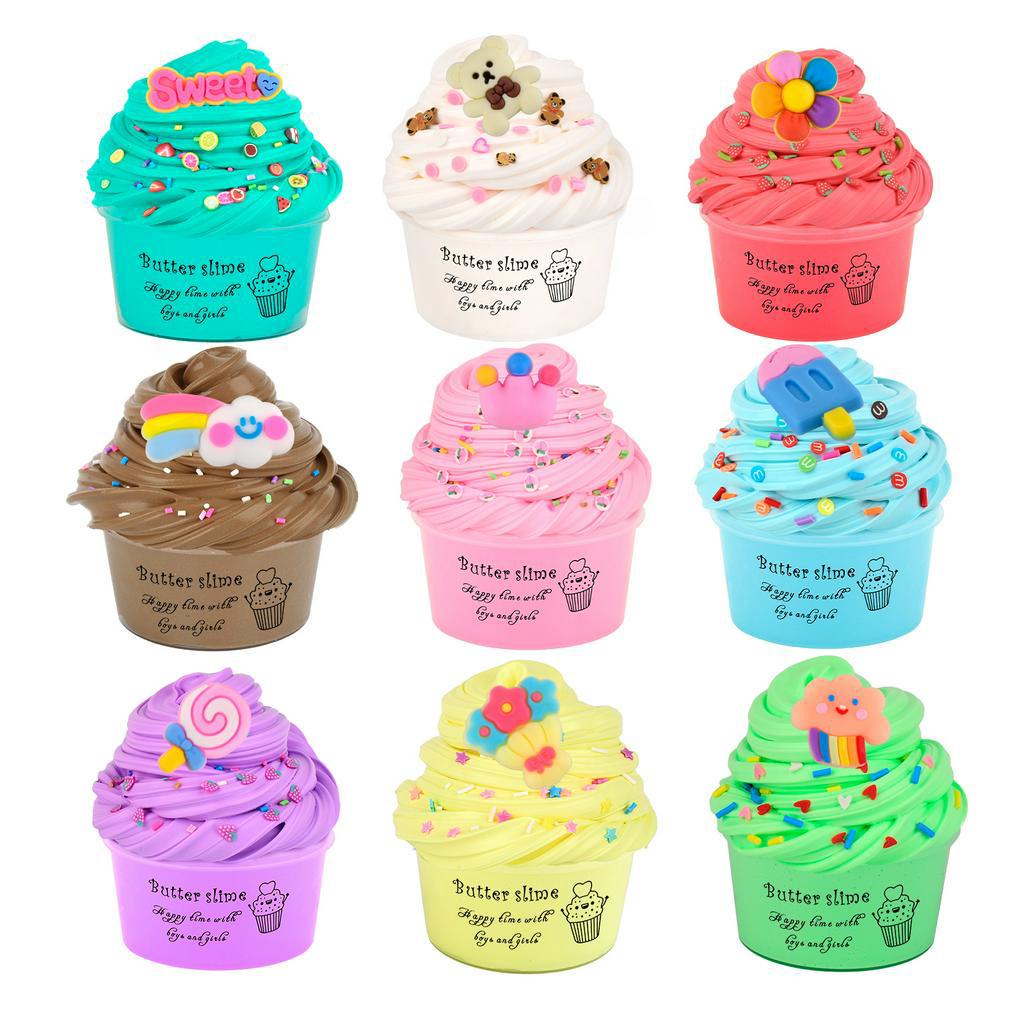 9pcs 45ml Conjunto de Lama de Algodão, Mini Conjunto de Lama de Manteiga, Kit de Lama Colorido, Brinquedo Macio Antiaderente, Presente de Aniversário Favorito para Festa