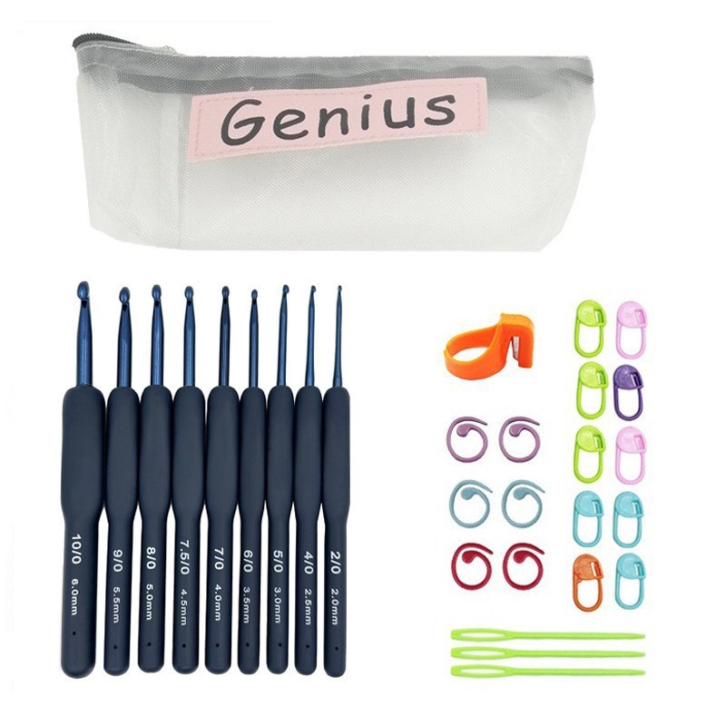 Fato de Crochê de Alumínio com Cabo Macio Azul-Marinho 9 Peças Kit de Ferramentas de Costura de Malha Bricolage