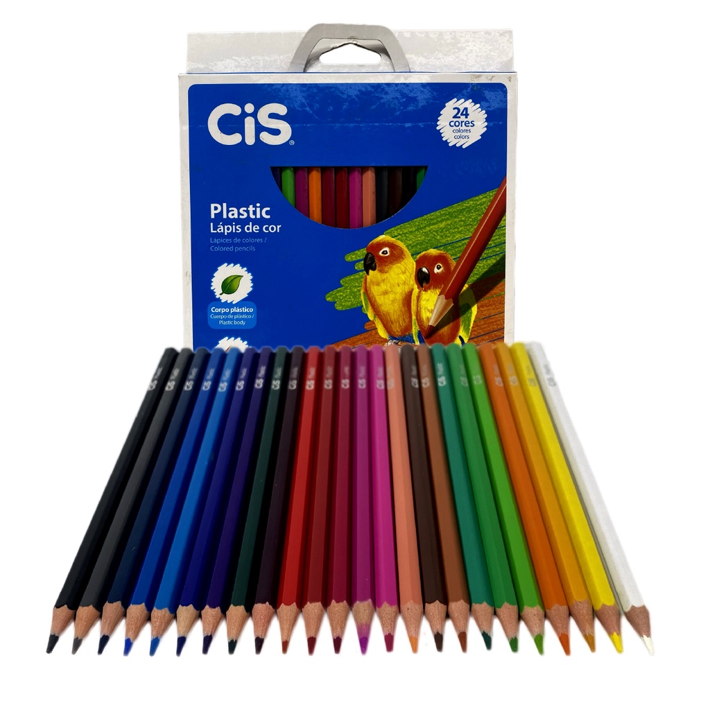 Lápis de cor 24 Cores CIS Corpo de Plástico Cores Vívidas Multicor