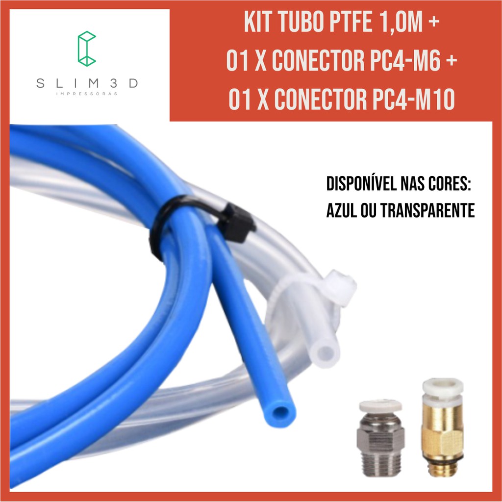 Kit Tubo PTFE 1,0m + 01 x Conector Pc4-M6 + 01 x Conector Pc4-M10 para impressora 3D