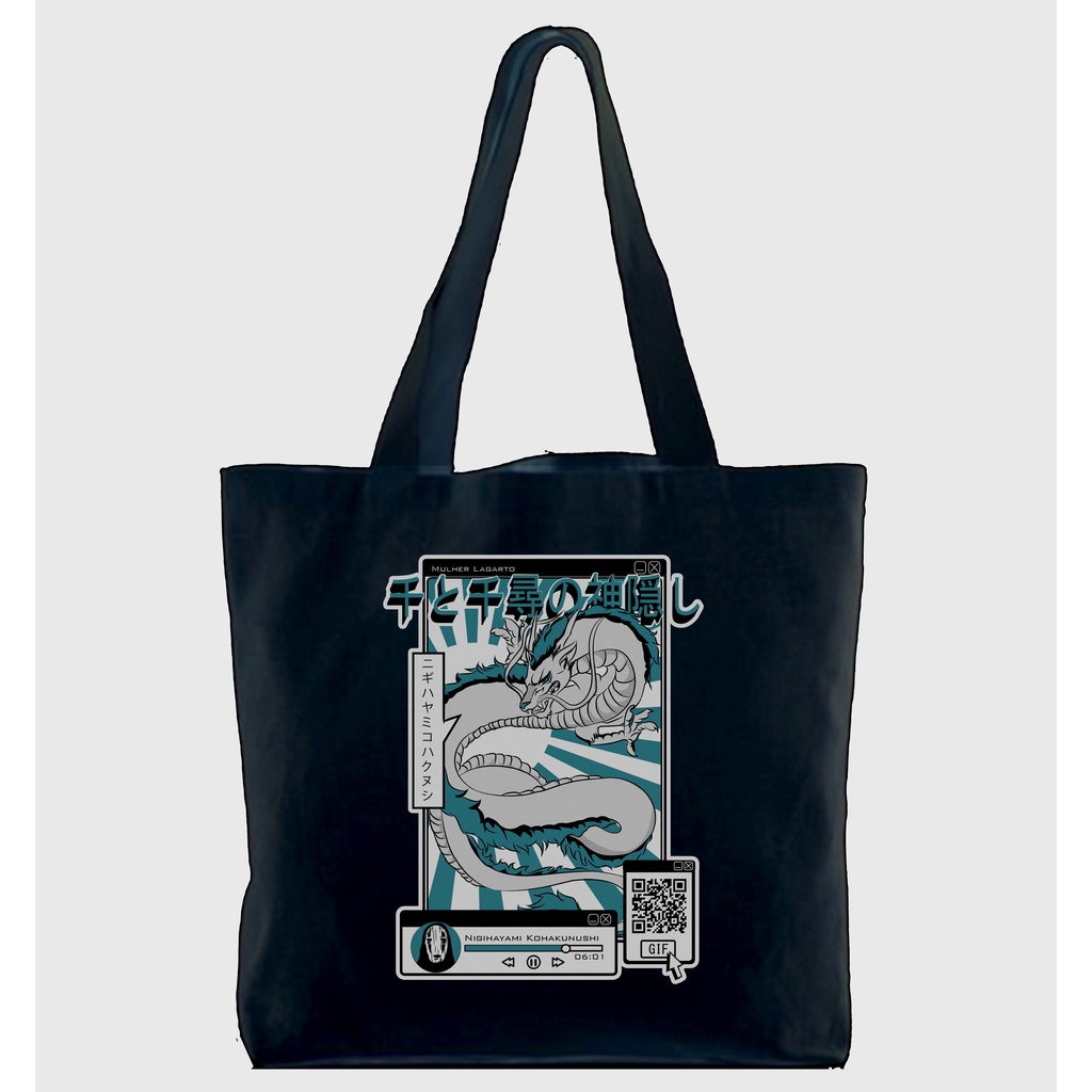 Sacola Ecobag Preta Haku Viagem de Chihiro