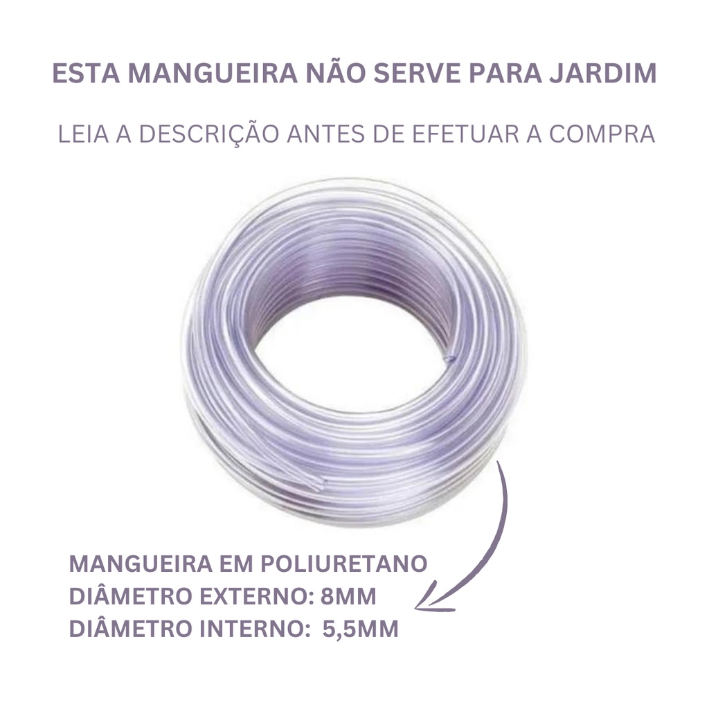 Rolo 5 Metros Tubo Pu 8mm - Cristal Mangueira Pneumática Flexível 8mm