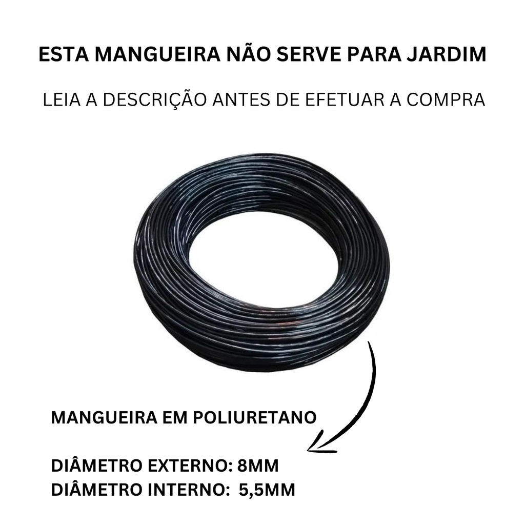 Rolo 05 Metros Tubo Pu 8mm - Preto Mangueira Pneumática Flexível 8mm