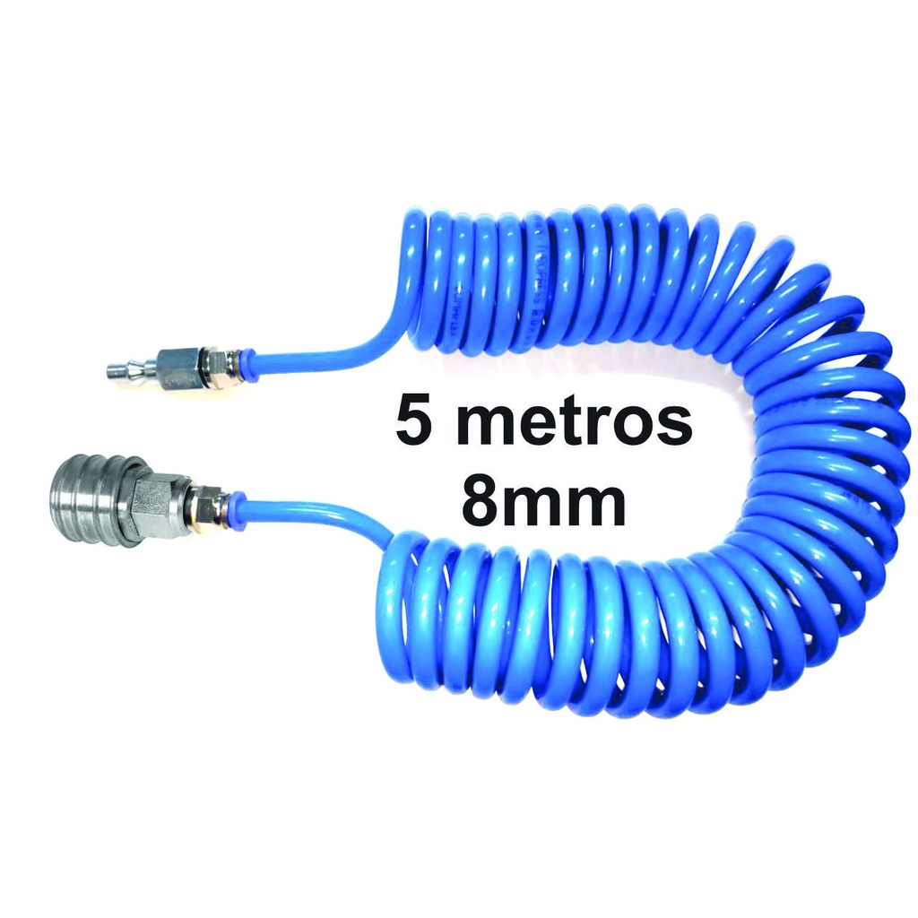 Mangueira Tubo Espiral Pu 8mm X 5 Mts Ar Comprimido Limpeza
