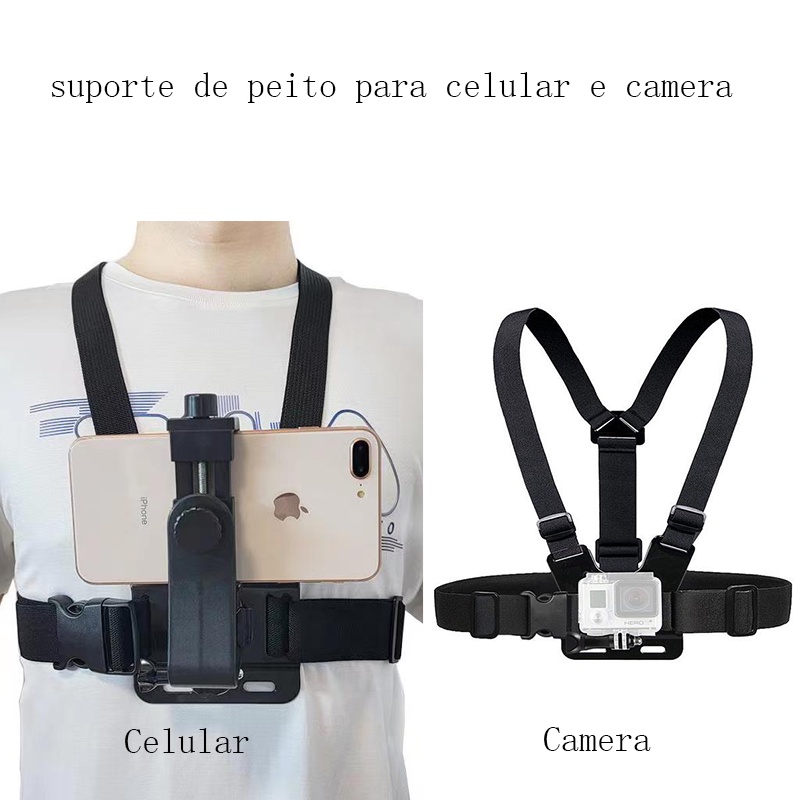 suporte de peito para celular e câmeras de ação go pro sjcam