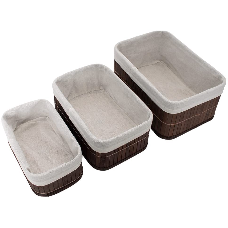 Jogo De 3 Cestos Caixas Organizadores Bambu Natural Com Tecido