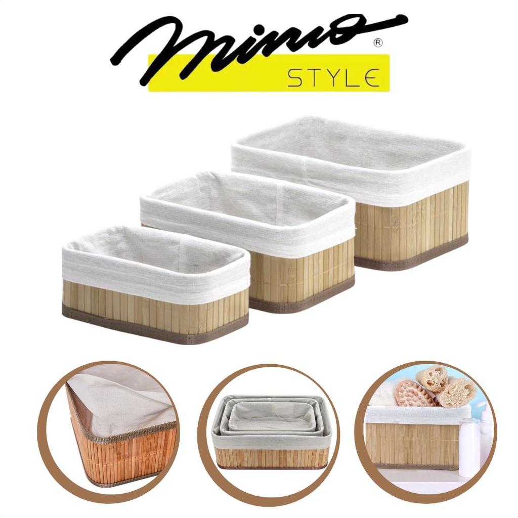 Jogo c/3 Cestos Organizadores de Bambu Natural Mimo