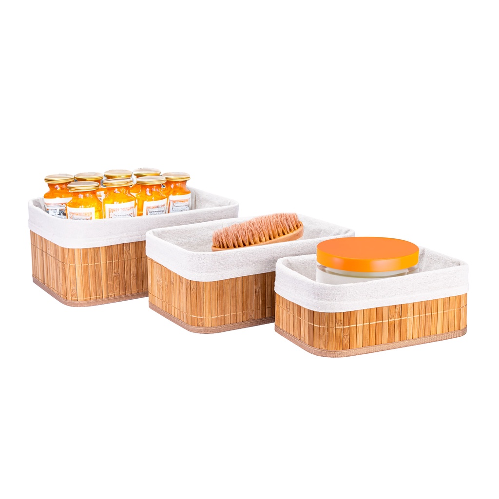 Jogo de Cestos Organizadores Bambu Natural Artiko Pott Forrado 3 Peças