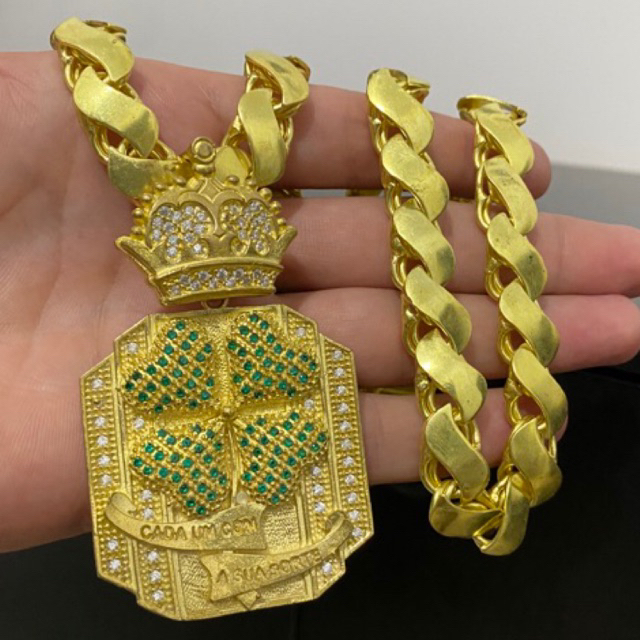 Corrente Frizo S Mc Poze Feita em 100% moeda antiga e pingente trevo grande