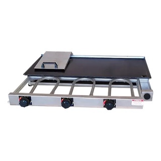 Chapa Chapeira De Lanches Porções Hot Dog Hambúrguer a Gás 70x30 cm Borda Alta Com 3 Queimadores + Brinde