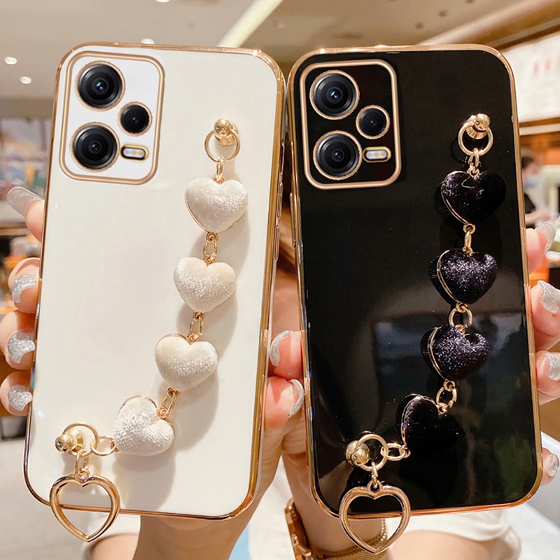 Capinha Caixa De Telefone POCO X5 PRO 5G 2023 Softcase silicone Galvanizado À Prova De Choque Capa Protetora Do Pára-Choques Novo design Alças De Pulseira Lanyard Para Meninas WDXGS01 CAPA