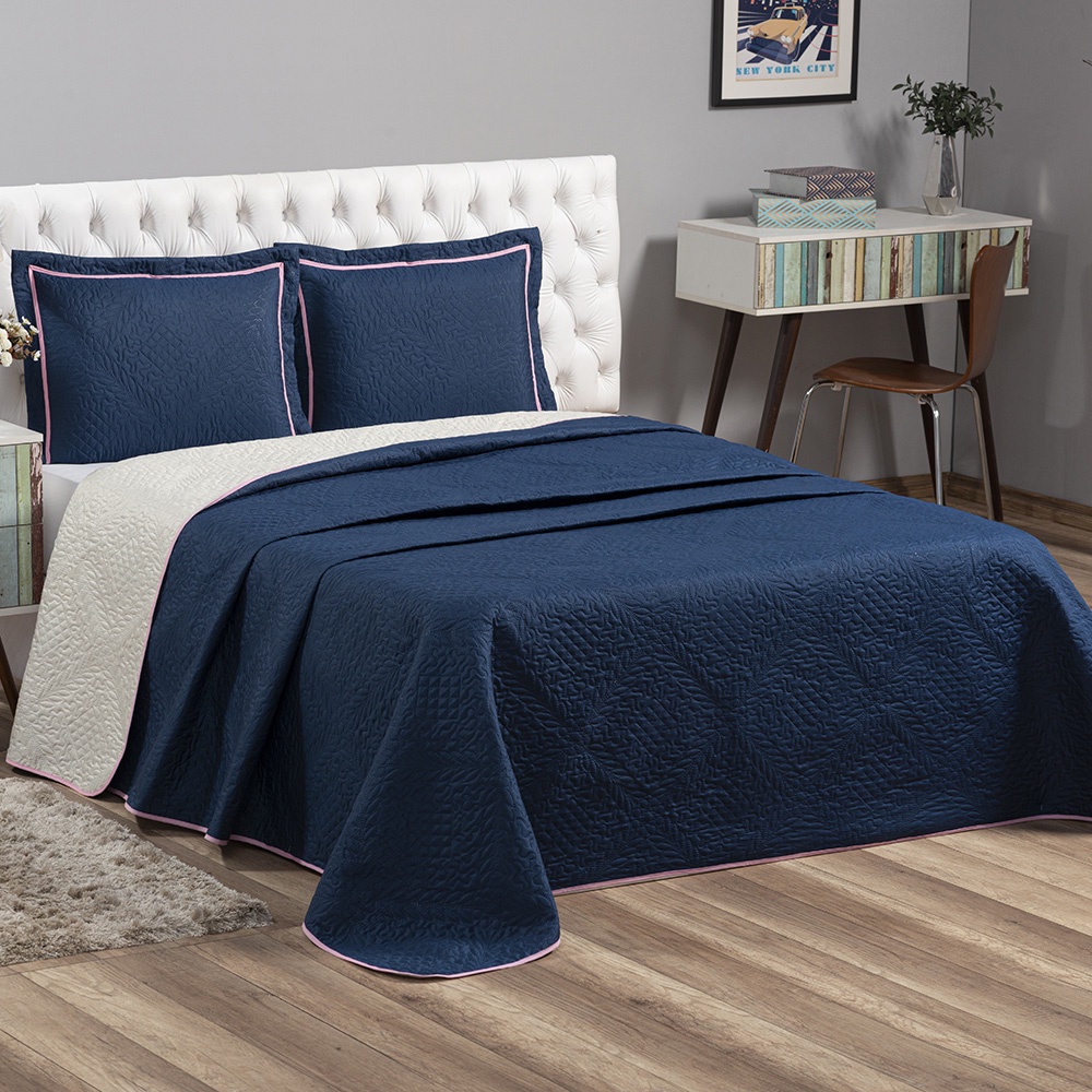 Cobre Leito Colcha Ayla Casal Queen Dupla Face 03 Peças - Azul Marinho