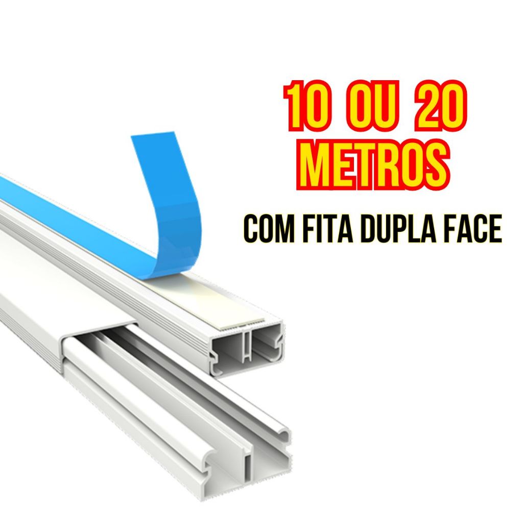 10 ou 20 Metros Canaleta Sistema X Com Fita Dupla Face e Divisória Preta Branca 20x10 comercial organização proteção dos fios e cabo eletricos