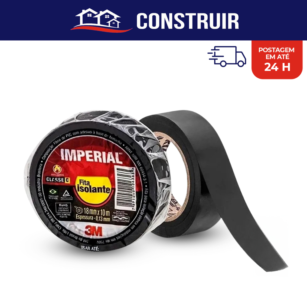 Fita Isolante 3m Imperial Preta 5 10 ou 20 Metros Uso Elétrico Profissional