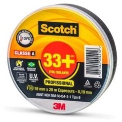 Fita Isolante 33+ Profissional 19mm x 20 metros Preta 3m