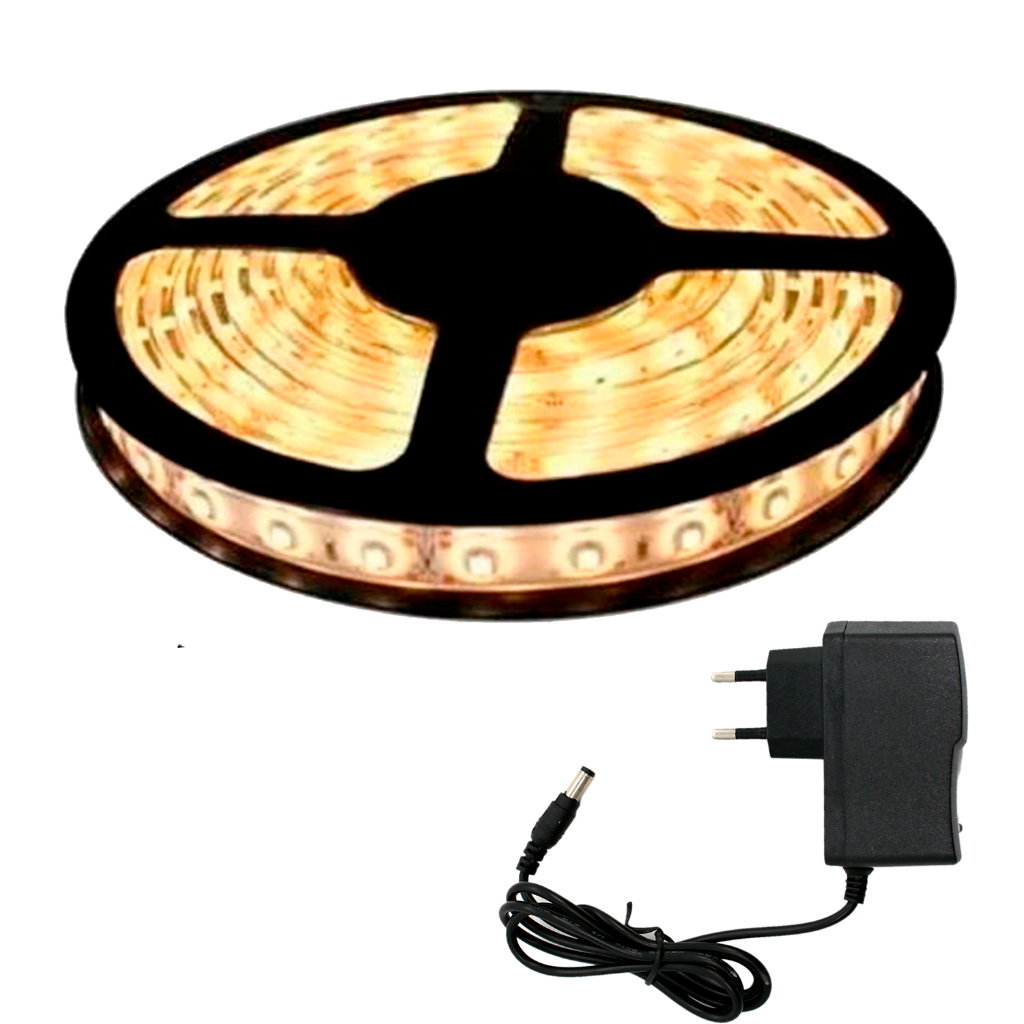 Fita Led 5050 Rolo 5 Metros 300 Leds Ip65 Dupla Face + Fonte Com Silicone Prova DÁgua para Decoração