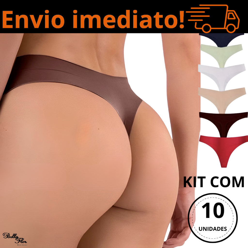 Kit 10 Calcinhas FIO DENTAL PREMIUM Tanga Sem Costura Corte a Laser Forro Algodão Não Marca