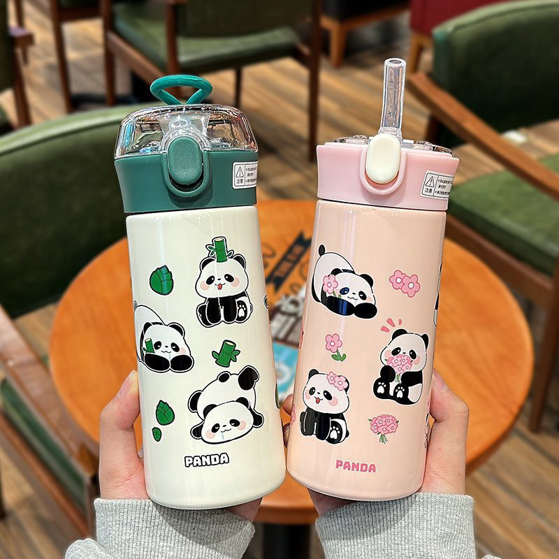 Garrafa Térmica Com Canudo Estampa Panda Aço Inox 500ml Super Gualidade