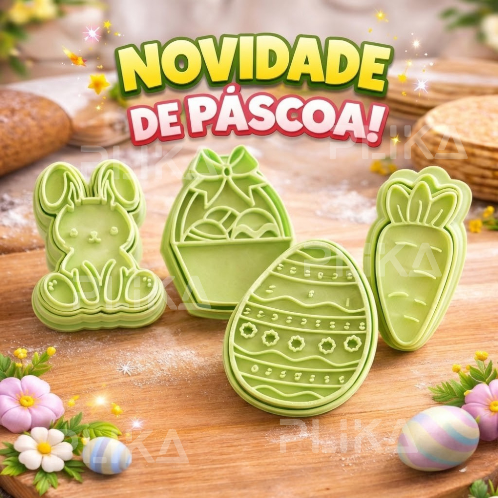 Cortador Confeitaria Massas KIT Páscoa - Molde Biscoito Biscuit Bolacha | Coelho Ovo Cenoura Cesta