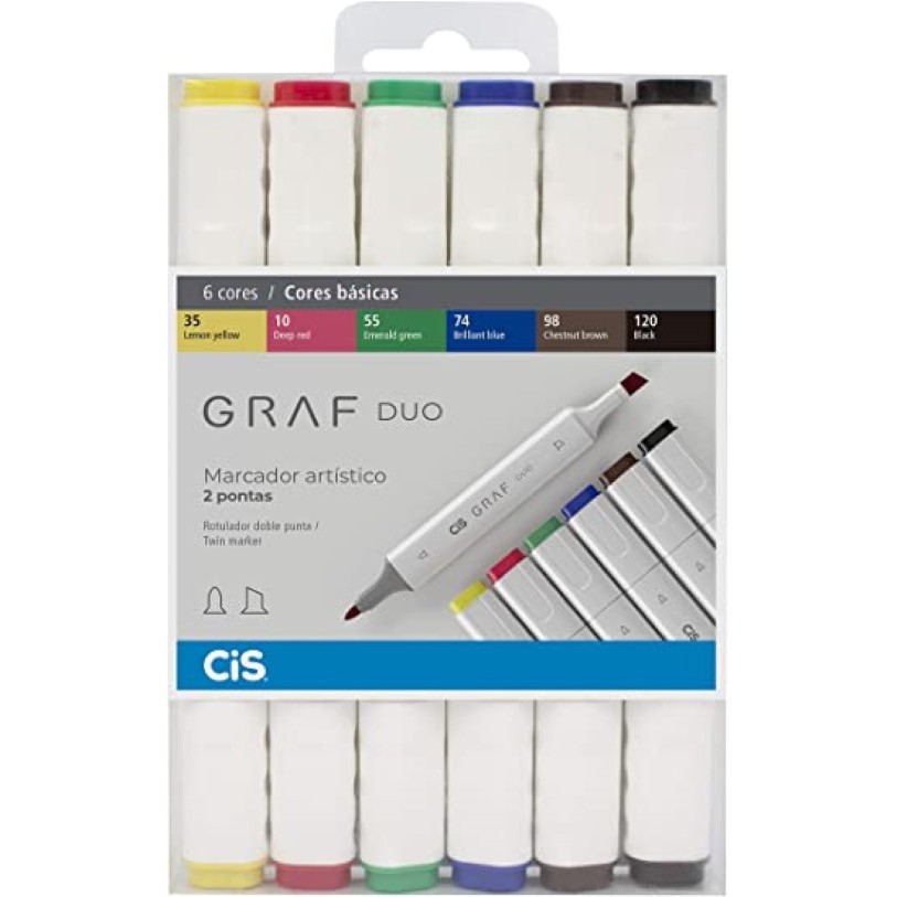 Caneta Marcador Cis Graf Duo 2 Pontas - 6 Cores Básicas
