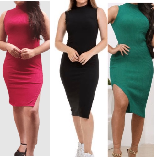 Vestido Feminino Midi Com Fenda Lateral Malha Canelada Roupas Feminina Promoção Tamanho P.M.G.GG