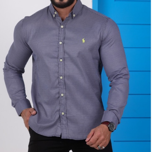 Camisa Slim Fit Botao na gola Luxo Micro Xadrez Bordado Entrega Imediata