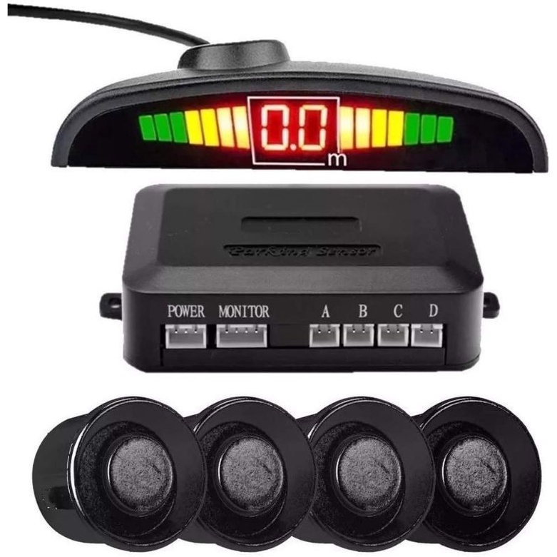 Kit Sensor Estacionamento Ré Para Carro Cinza - Claro / Grafite / chumbo / Prata / Preto / Prata / Branco / Vermelho