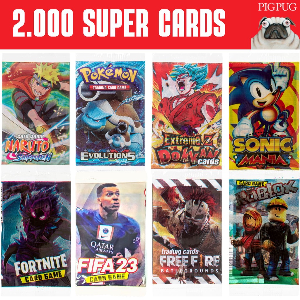 500 Cards Variados = 125 Pacotinhos Lacrados/Pokemon/Naruto/Sonic/GTA/Dragon Ball/Free Fire/Fortnite/Card Game/Revenda/Cartinhas
