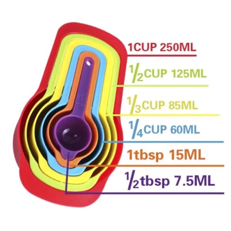 Kit Com 6 Unidades Conjunto Colher Colheres Xicaras De Medida 6 Peças Medidoras Coloridas Para Medida Bolo Casa Em Cozinha