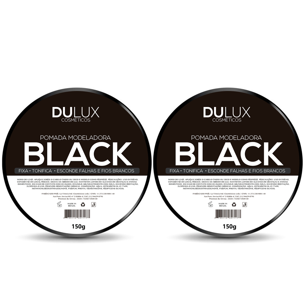 2 Pomada Modeladora Preta Pigmentada Fixação 150g Cabelo e Barba Dulux